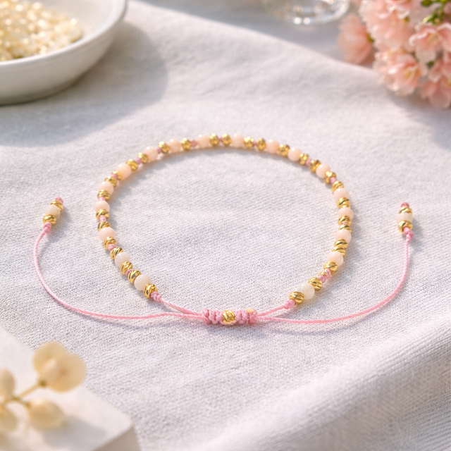Découvrez la douceur angélique de ce bracelet bohème en Opale, une création délicate disponible sur coeurmineral.fr. Ce bijou allie les nuances tendres de la pierre naturelle à l'éclat de perles en acier doré facettées, pour un rendu lumineux et raffiné.
