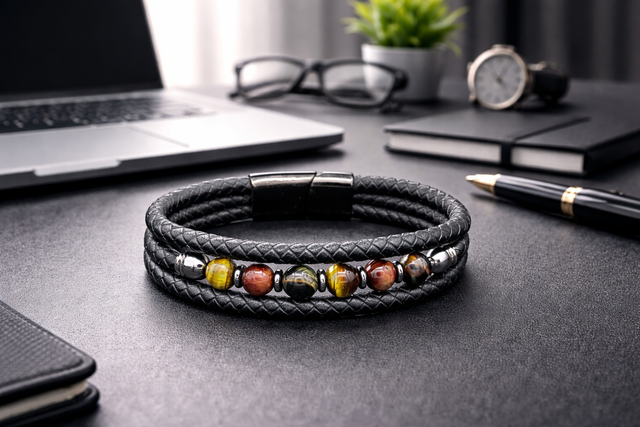 Bracelet en cuir avec des perles 3 Œil de 8 mm