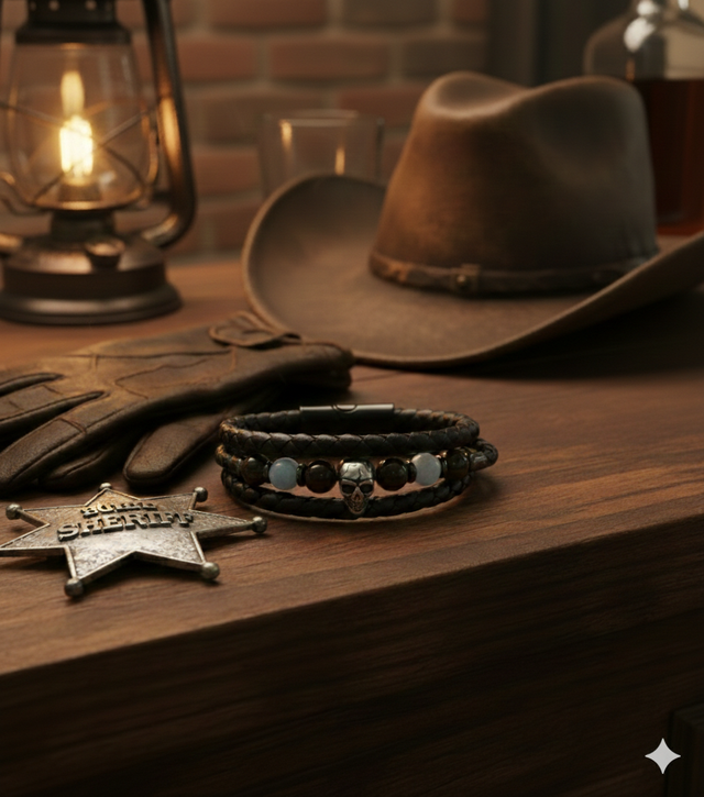 Domptez les éléments avec le bracelet Outlaw, une pièce de caractère conçue pour ceux qui tracent leur propre route. Entre l'esprit Western et la puissance des pierres, cet accessoire impose un style sans compromis.