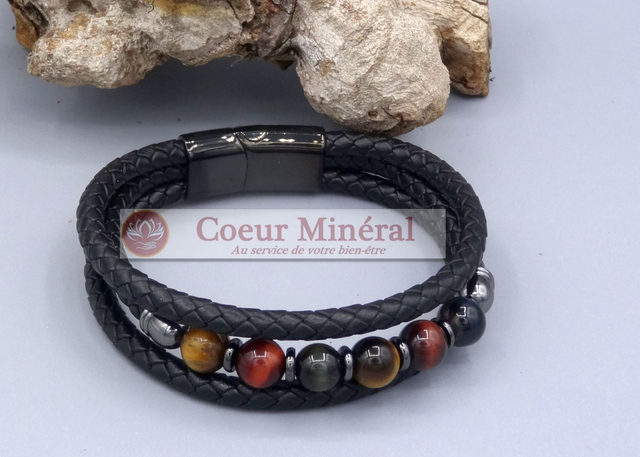 Bracelet en cuir avec des perles 3 Œil de 8 mm