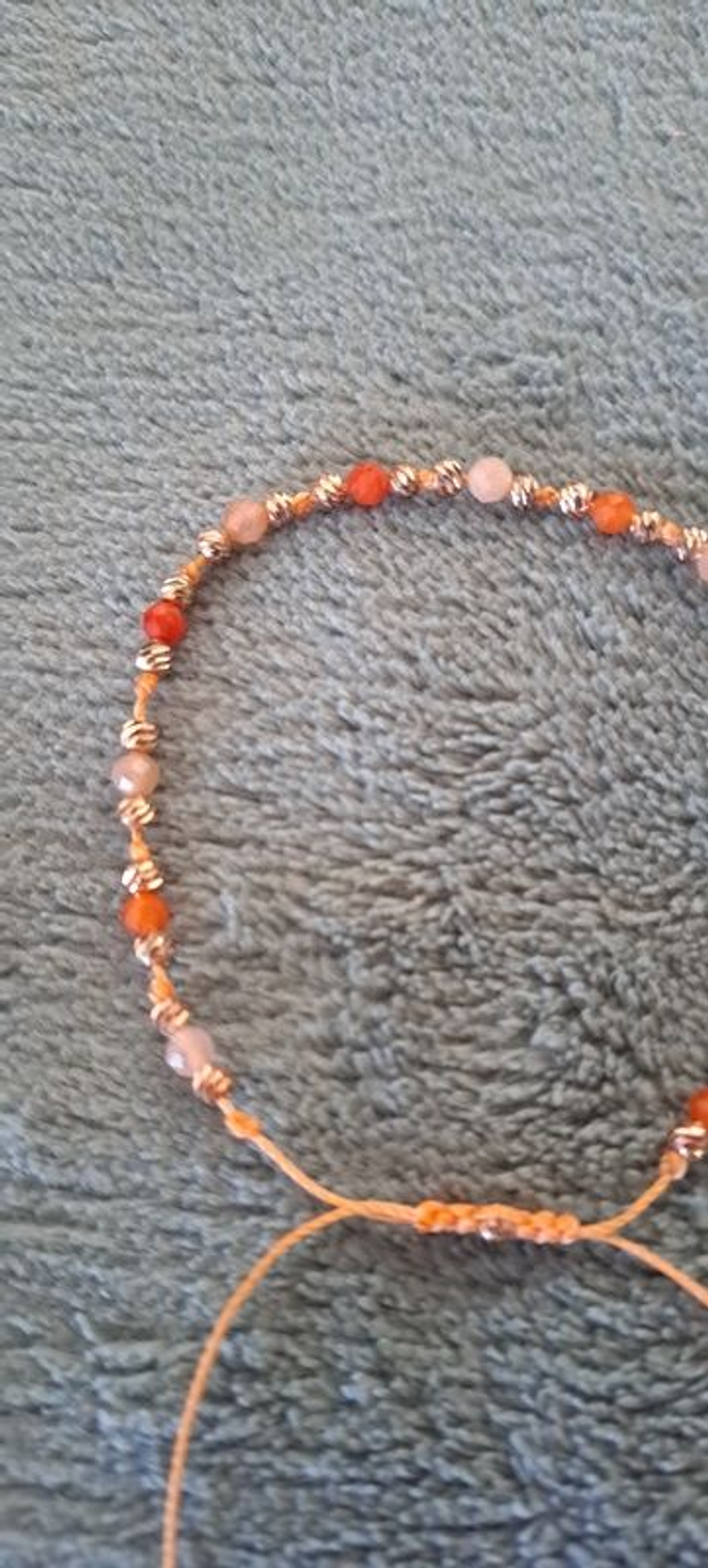 Illuminez votre quotidien avec ce bracelet artisanal alliant vitalité et lumière. Ce bijou délicat alterne la Cornaline et la Pierre du Soleil, rythmées par des perles au fini diamanté pour un éclat scintillant.