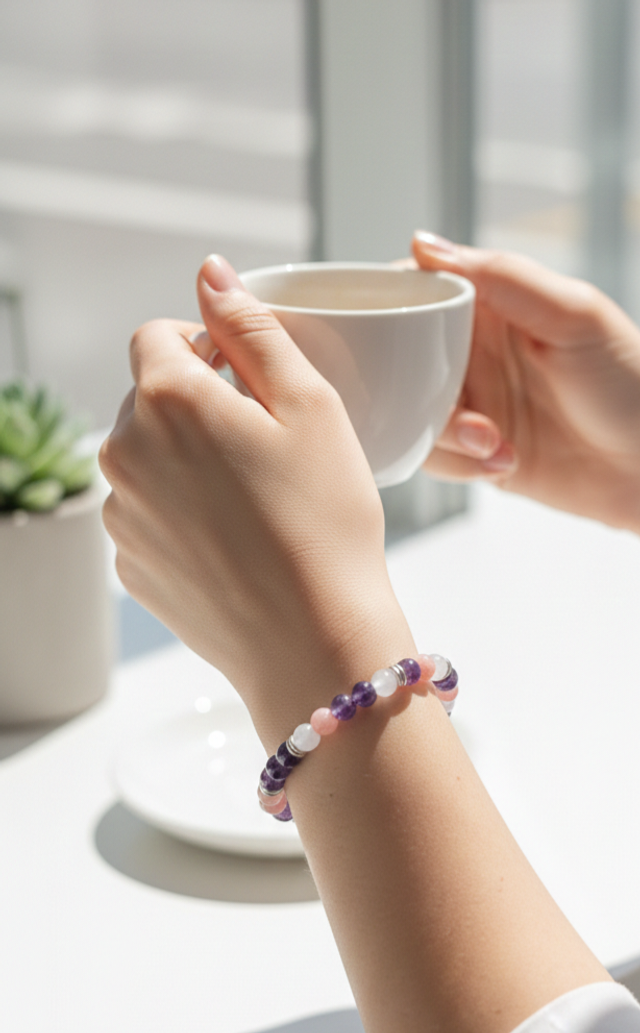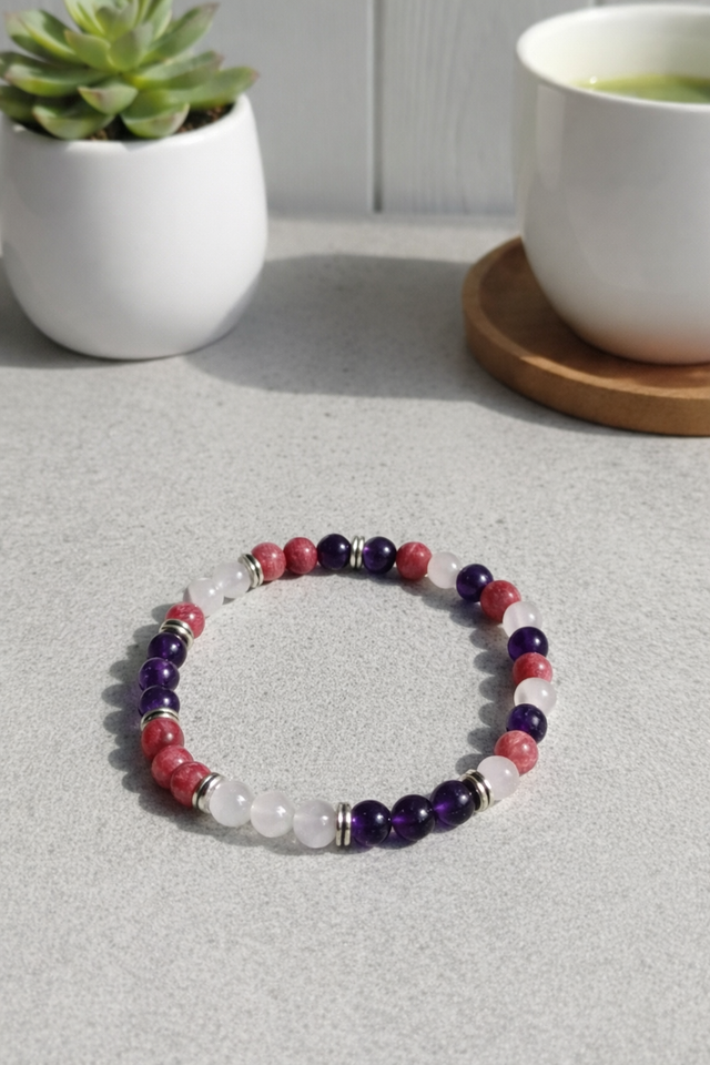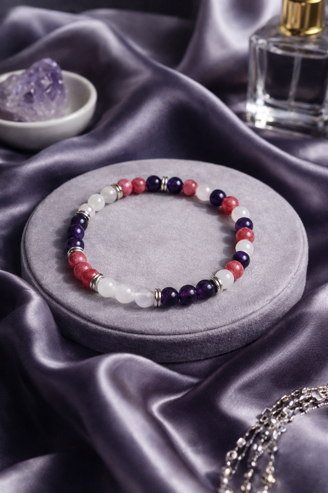Bracelet "Équilibre & Sérénité" – Améthyste, Rhodochrosite et Pierre de Lune
