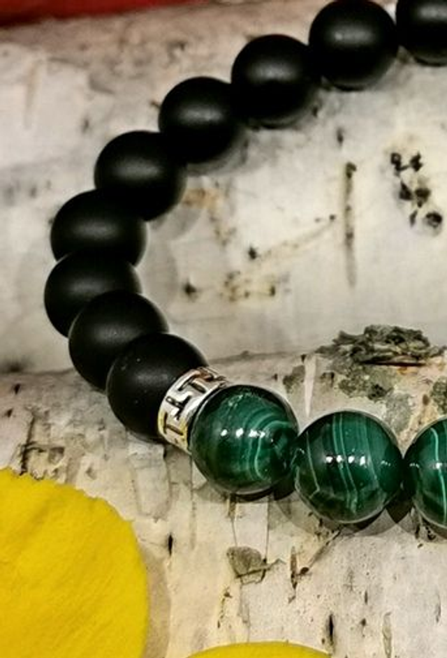 Alliez élégance et force intérieure avec ce bracelet artisanal unique. Ce bijou combine la profondeur vibrante de la Malachite à la sobriété moderne de l’Onyx mat pour un style affirmé et protecteur.