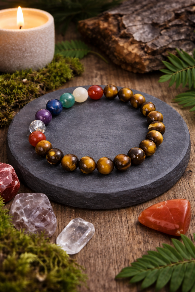 Bracelet Protection & Équilibre | Œil de Tigre et 7 Chakras