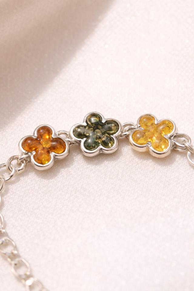 Bracelet Trèfles en Ambre de la Baltique