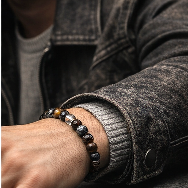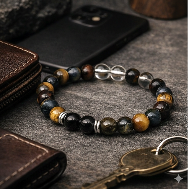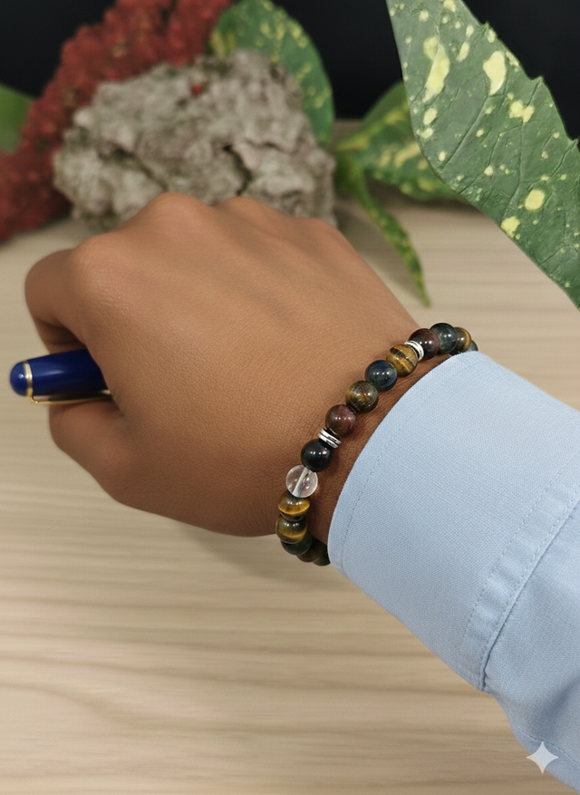 Bracelet Triple Protection & Sérénité – 3 Œils, Cristal de Roche et Onyx